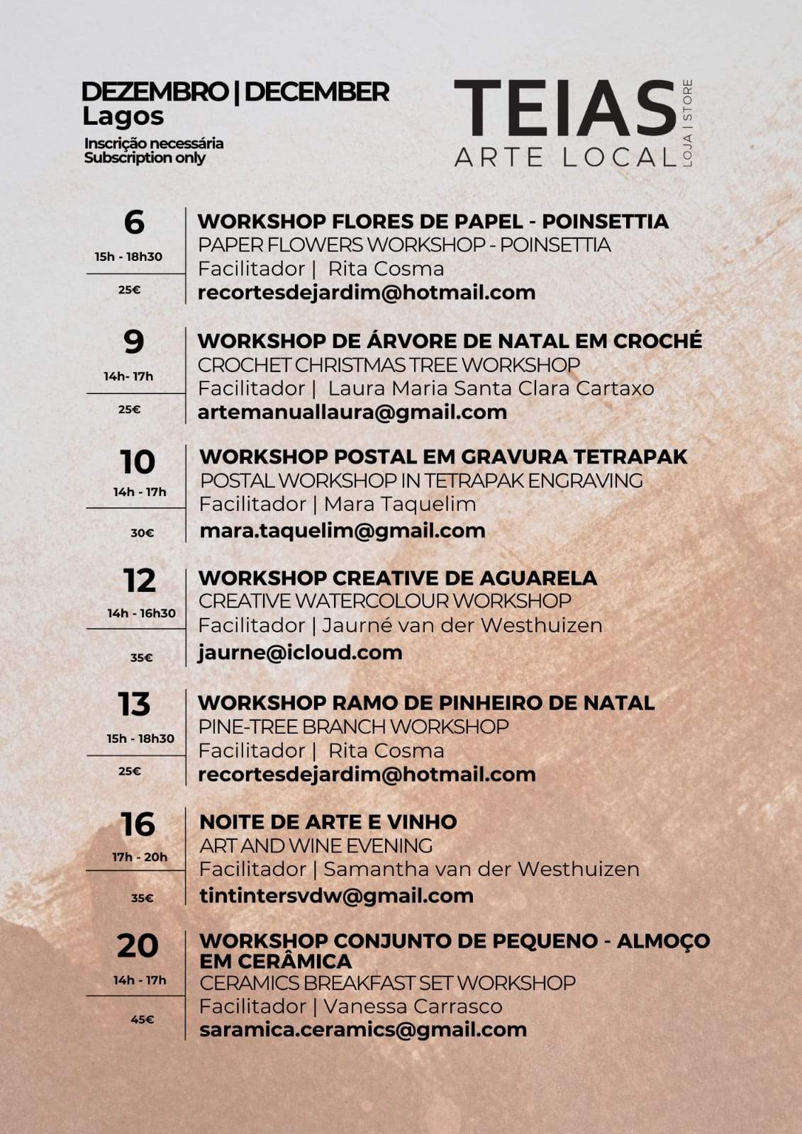 If you have an interesting workshop to propose to us, send us an email to info@teialagos.pt